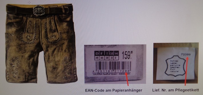 Die Original Stockerpoint GmbH informiert über den Rückruf von hellbraunen Herrenlederhosen. Wie das Unternehmen mitteilt, wurde bei dem Artikel eine um 1,6 mg/ kg erhöhte Konzentration von Chrom VI über dem vom Gesetzgeber festgelegten Wert von 3mg/ kg Leder bei dem am Innenbund und der inneren Verstärkung der Knopfleiste am Bein verarbeitetem Leder festgestellt.