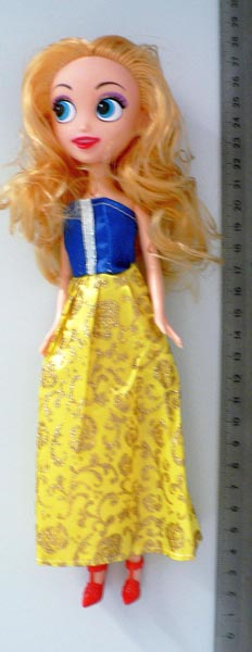 | Beschreibung: | Plastikpuppe, ca. 27 cm groß, mit langen blonden / braunen Haaren, verkauft in schmalen, rechteckigen Klarsichtpackungen. |