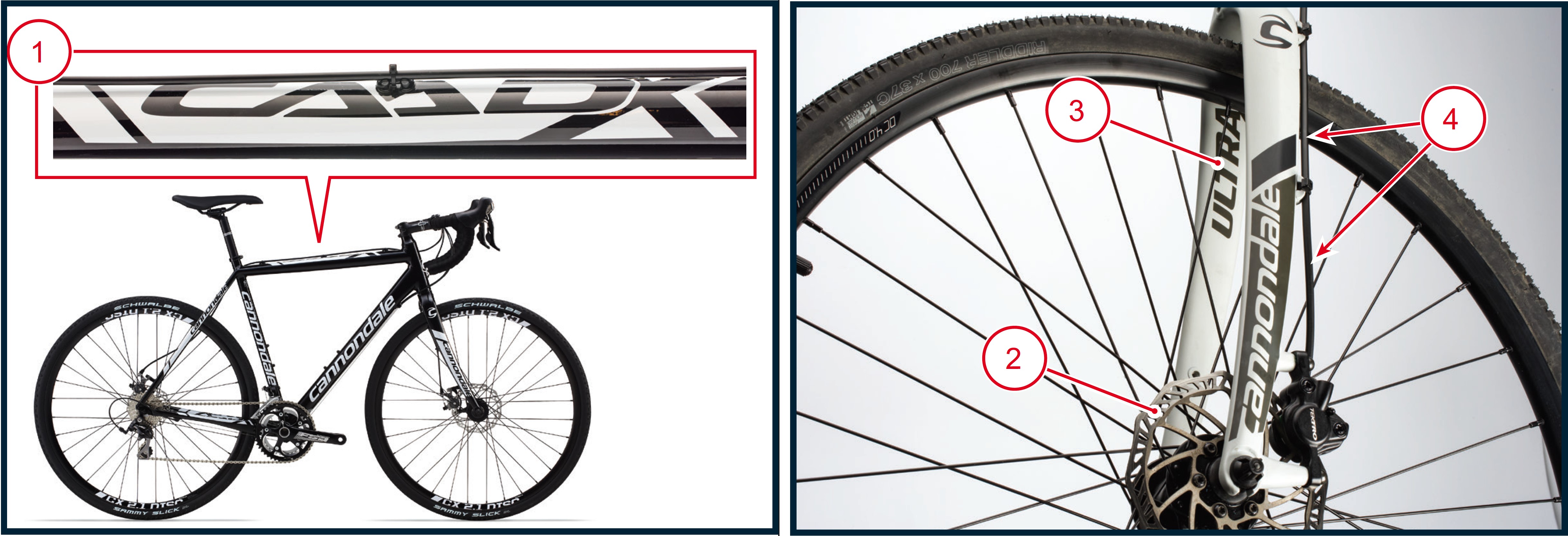 Besitzer von Cannondale Cyclocross CAADX Fahrrädern können selbst feststellen, ob ihr CAADX von diesem Rückruf betroffen ist. Dazu sollte das Rad auf nachfolgend aufgeführten Merkmale kontrolliert werden (wie in den Abbildungen zu sehen):