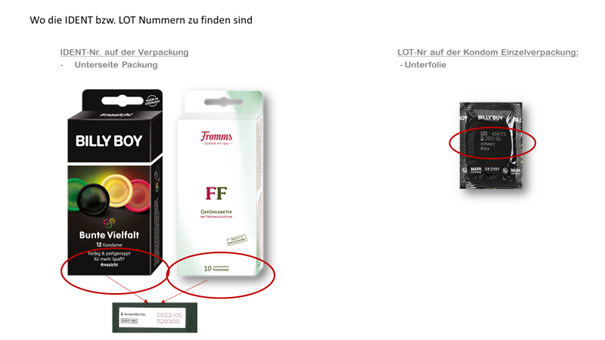 Die betroffenen Kondomsorten sind anhand der LOT – Nummer auf der Kondom Einzelverpackung identifizierbar