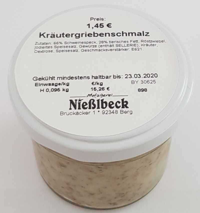 Die Metzgerei Nießlbeck mit Sitz in Berg bei Neumarkt (Oberpfalz) informiert über den regionalen Rückruf aller Griebenschmalz Gläser. Wie das Unternehmen mitteilt, kann durch den Lieferanten für Röstzwiebeln nicht ausgeschlossen werden, dass sich Metalldrähte in den Röstzwiebeln befinden.