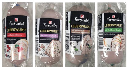 Kaufland ruft Leberwurst aus dem K-Favourites Sortiment zurück. Betroffen sind die Sorten Leberwurst mit Preiselbeeren, Leberwurst mit schwarzen Trüffeln, Leberwurst mit gerösteten und gemahlenen Kaffeebohnen und Leberwurst mit Apfel und Zwiebel, jeweils in 150g Packungen.