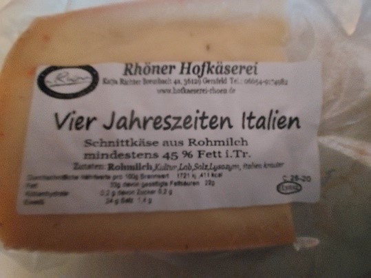Die Rhöner Hofkäserei informiert über den Rückruf des Rohmilch Schnittkäse „Vier Jahreszeiten Italien“ mit der Chargennummer 25-20. Wie das Unternehmen mitteilt, wurden im Rahmen der Eigenkontrolle Salmonellen nachgewiesen. Der Käse wurde in Lebensmittelgeschäften in Hessen und Bayern verkauft.