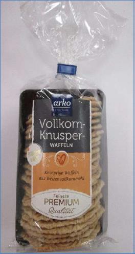 Die arko GmbH informiert in Abstimmung mit der zuständigen Behörde über den Rückruf mehrerer Chargen des Artikels „Vollkorn Knusperwaffeln“ in der 150g Packung.