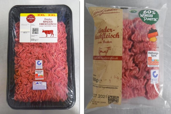WestfalenLand Fleischwaren ruft aktuell die Produkte „Rinderhackfleisch XXL, 800g, Meine Metzgerei“ verkauft bei Aldi Nord mit dem Verbrauchsdatum 20.07.2021 und 21.07.2021 sowie den Artikel „Rinderhackfleisch im Schlauchbeutel, 500g, Landjunker“ mit dem Verbrauchsdatum 19.07.2021 und 20.07.2021 und „Landjunker Familien-Packung Rinderhackfleisch, 800g“ verkauft bei Lidl mit dem Verbrauchsdatum 20.07.2021 zurück. Auf den Artikeln ist das Hersteller-Identitätskennzeichen „DE NW 88888 EG“ auf der Unterseite angegeben.