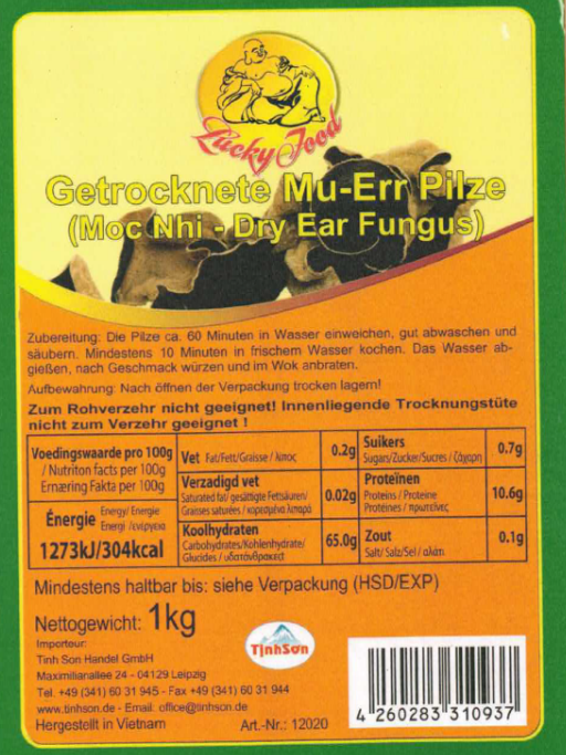 Die Tinh Son Handels GmbH ruft den Artikel „Getrocknete Mu-Err Pilze (Moch Nhi – Dry Ear Fungus)“ zurück. Wie das Unternehmen mitteilt, wurde amtlich eine Rückstandshöchstgehaltsüberschreitung mit dem Pflanzenschutzmittel Chlorpyrifos festgestellt.