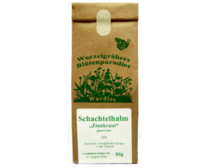 Die Wurdies Kräuter GmbH & Co.KG informiert über den Rückruf des abgepackten Tüten-Artikels „Schachtelhalm „Zinnkraut“ geschnitten Bio“ Nettofüllmenge 50 g mit den Mindesthaltbarkeitsdaten 11.12.2023, 15.01.2024, 12.03.2024, 27.04.2024, 28.06.2024, 31.08.2024.