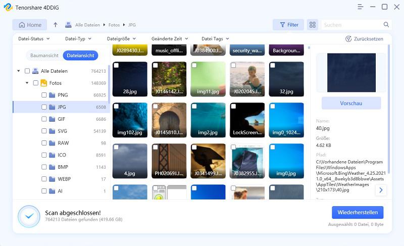 Lösung 2: Mit Tenorshare 4DDiG endgültig gelöschte Fotos wiederherstellen