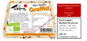 Weitere Taifun-Produkte oder weitere Losnummern der Tofu-Terrine Graffiti sind NICHT betroffen.