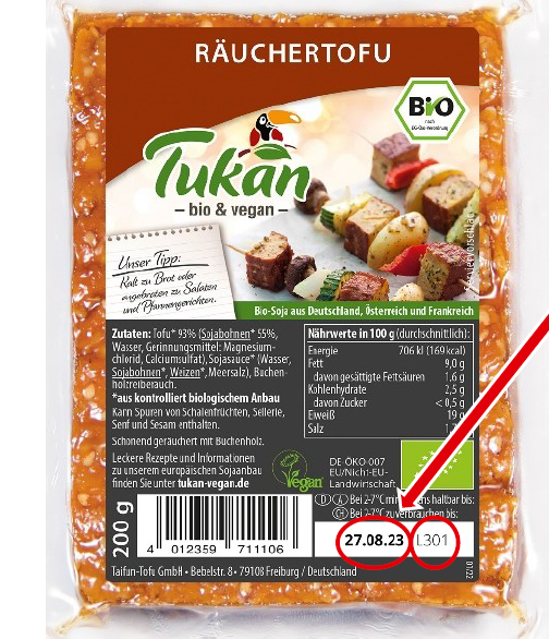 Die Taifun-Tofu GmbH hat umgehend reagiert und die betroffene Charge über den belieferten Handel aus dem Verkehr gezogen.
