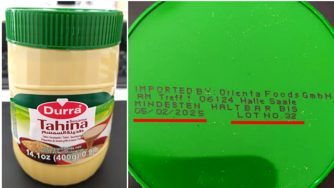 Die Orienta Foods GmbH informiert über den Rückruf des Artikels „Durra Sesampaste Tahina 400g“ mit dem Mindesthaltbarkeitsdatum . Wie das Unternehmen mitteilt, wurden im Rahmen von Untersuchungen in dem genannten Artikel Salmonellen nachgewiesen.