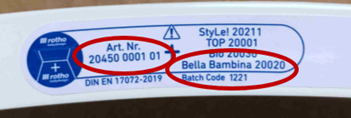 Sollten Sie unsicher sein, ob Ihr Produkt betroffen ist, schicken Sie ein Foto von dem Sicherheitsaufkleber per E‑Mail an productcare@rotho.com. Rotho Babydesign überprüft das und gibt Ihnen dann Bescheid.