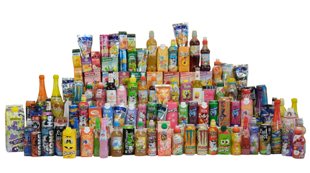 Für die Marktstudie hat foodwatch in den fünf größten Supermärkten (Edeka, Rewe, Aldi, Lidl und Kaufland) sämtliche Getränke eingekauft, deren Verpackung Kinder und Jugendliche ansprechen soll, beispielsweise durch den Aufdruck von Tieren und Comicfiguren oder durch eine besonders „coole“ Produktgestaltung wie etwa bei Eistees oder Energydrinks. Getränke, die in einer fast ausschließlich von Kindern getrunkenen Darreichungsform verkauft werden, wurden ebenfalls einbezogen (Trinkpäckchen oder kleine Flaschen mit Saugverschluss). Zu den untersuchten Produkten gehören etwa Limonaden, Fruchtsäfte, Energydrinks, Mineralwasser und Eistees. Milchbasierte Getränke wurden nicht berücksichtigt.