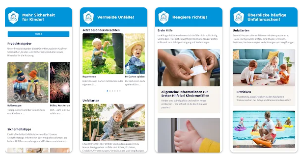Die App bietet relevante Informationen und wichtige Hinweise, die Eltern die Kaufentscheidung erleichtern. Die Produktportraits vermitteln Hinweise zum Einkauf und Gebrauch verschiedener Produkte. Besonders verbraucherfreundlich ist die Möglichkeit, Informationen zu individualisieren: Nutzerinnen und Nutzer können die App so einstellen, dass sie passende Informationen entsprechend dem Alter beziehungsweise der Entwicklung ihrer Kinder erhalten. Während die Eltern eines Säuglings beispielsweise Hinweise zu sicherem Spielzeug und Autokindersitzen, der Vermeidung von Stürzen, Verbrennungen und Verbrühungen erhalten, bekommen Eltern von älteren Kindern Tipps zur Verhinderung von Unfällen beim Spiel im Freien und zur Unfallprävention im Zusammenleben mit Haustieren oder im Straßenverkehr. Sämtliche Informationen zur Unfallprävention sind verbraucherfreundlich, attraktiv und leicht verständlich.