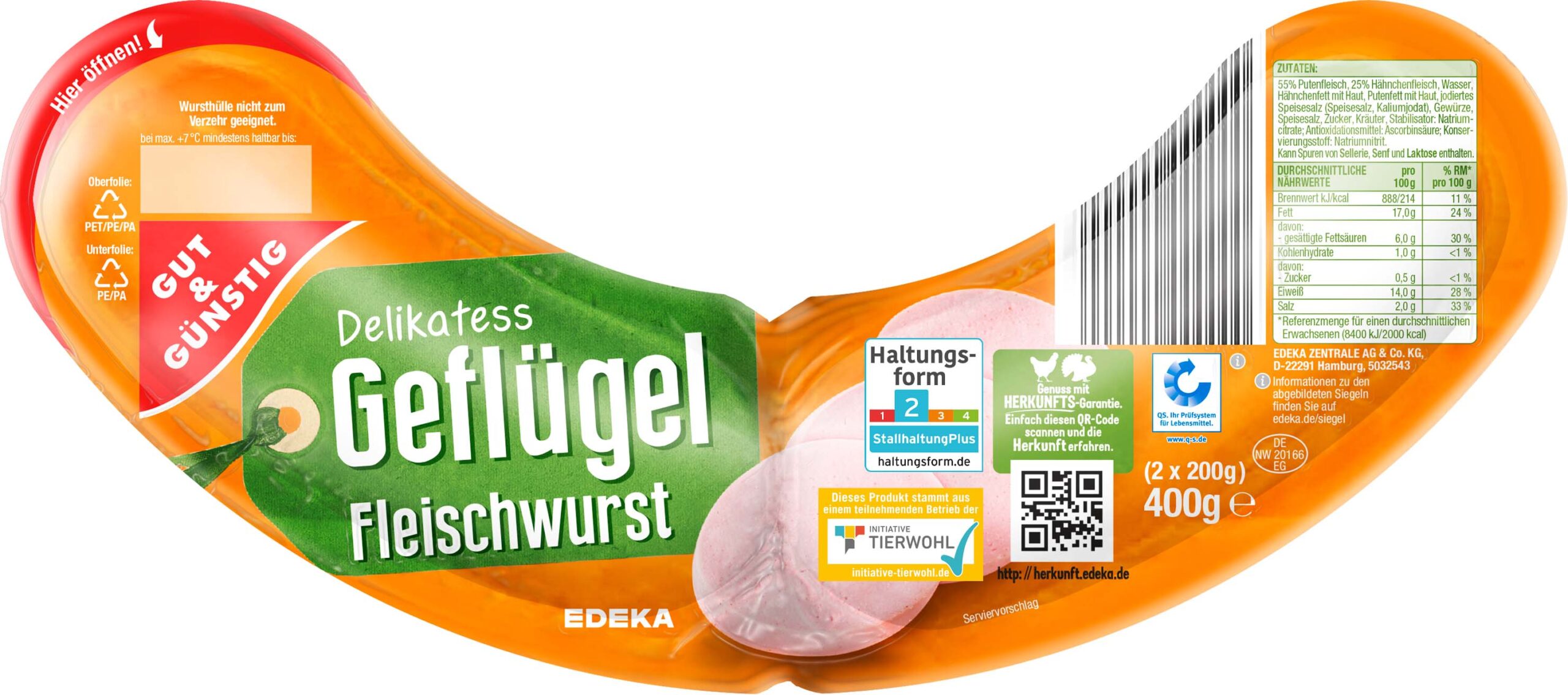 Rückruf: Daut ruft GUT&GÜNSTIG Delikatess Geflügel-Fleischwurst via EDEKA zurück
