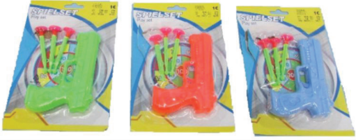 Artikel: Spielzeugpistole (blau, rot, grün) mit 3 Saugnapfpfeilen