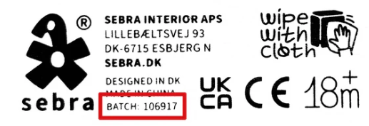 Wir bitten Sie, diesen Rückruf mit anderen Personen zu teilen, die möglicherweise eine Sebra Magnetische Zeichentafel mit der Batchnummer 106917 besitzen.