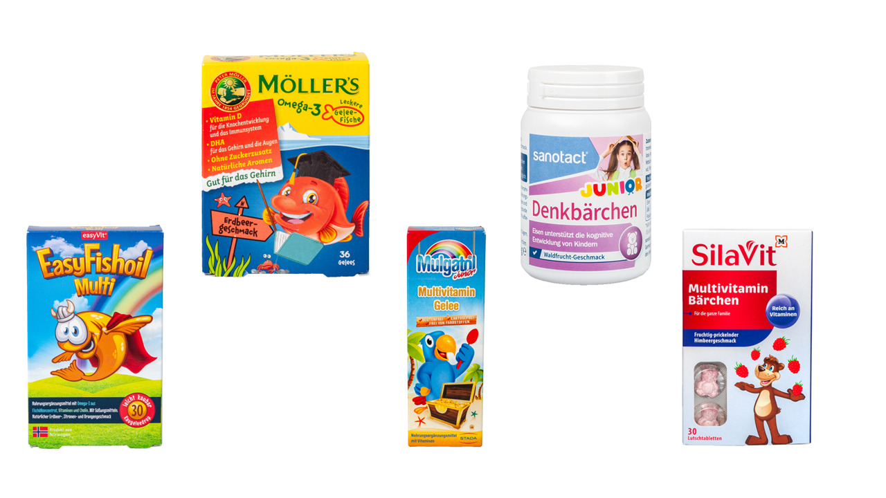 Sie kommen in bunten Verpackungen, mit süßen Tierbildchen oder als Bonbons in Form von Autos daher: Nahrungsergänzungsmittel speziell für Kinder. Sie sollen das Immunsystem stärken und den Nachwuchs beim Denken unterstützen, so die Versprechen.