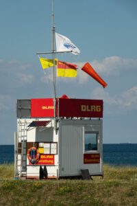 Offizielle Badestellen mit DLRG-Aufsicht bieten oft zusätzliche Sicherheit – achte auf die rot-gelben Flaggen!
