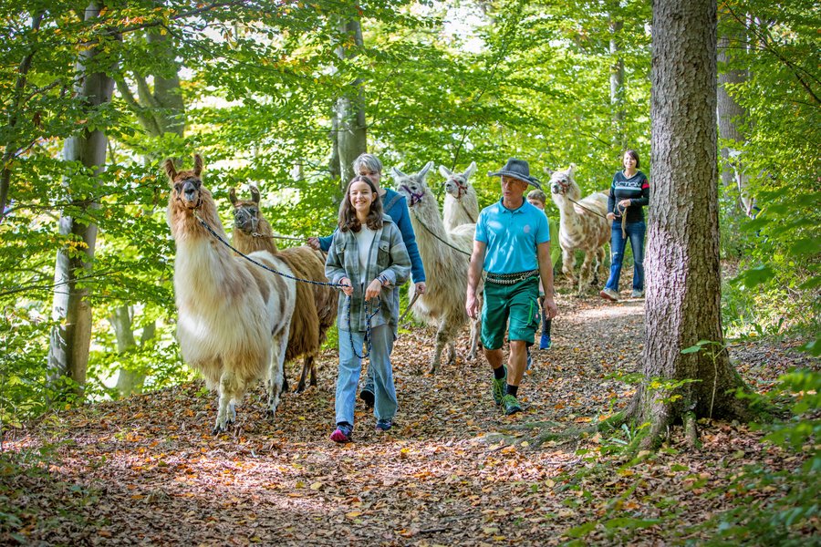In Begleitung von Lamas kommen auch Wandermuffel leichtfüßig in Schwung. – Foto: djd/Waging am See/Axel Effner