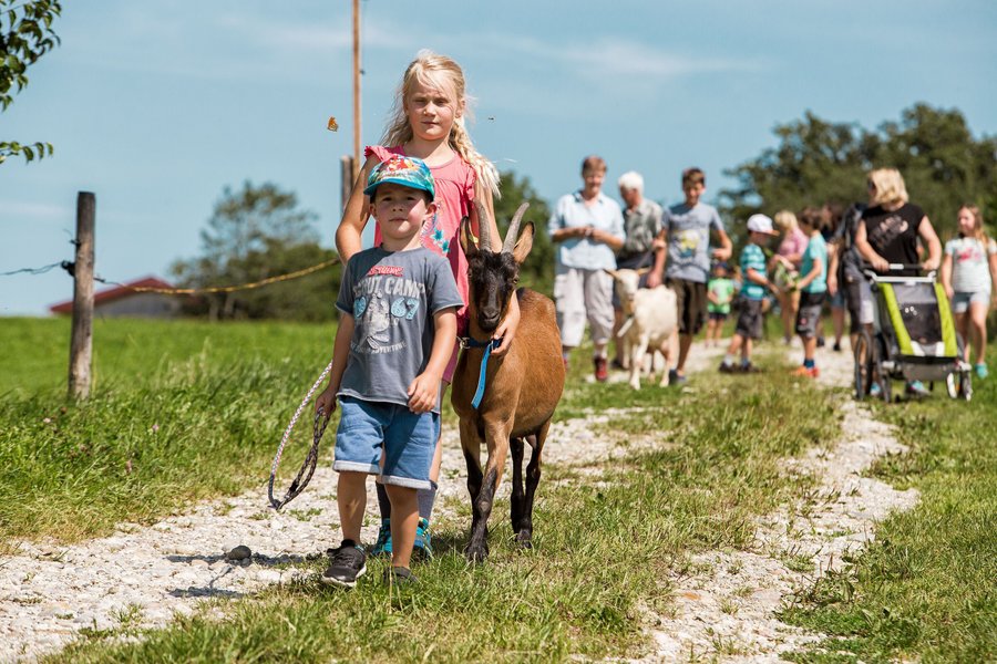 Beim Ziegen-Spaziergang macht die Bewegung in der Natur nochmal so viel Spaß. – Foto: djd/Tourist-Information Waginger See/Axel Effner