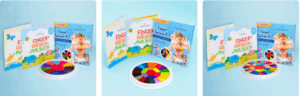 Set enthält eine runde Farbpalette (ca. 24 cm Durchmesser) und ein oder mehrere Fingermalbücher