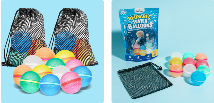 Die wiederverwendbaren magnetischen Wasserballons enthalten Sets mit weichen bunten Ballons aus Silikon mit kleinen Magneten im Inneren, die sich nach dem Befüllen automatisch verschließen. Die Ballons weisen ungefähr die Größe eines Tennisballs (etwa 7cm Durchmesser) auf und können für Spiele im Freien oder im Wasser wiederverwendet werden. Die Standard-Edition enthält durchsichtige Ballons in mehreren Farben, während die Glow-in-the-Dark-Edition ähnliche Ballons umfasst, die bei schummerigen Lichtverhältnissen leuchten. Jedes Set wurde mit einem oder mehreren schwarzen Netzbeuteln und einer Plastiktüte verkauft.