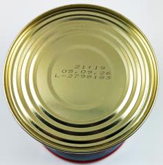 Das MHD sowie die Chargennummer mit Uhrzeit befinden sich auf dem Dosenboden.