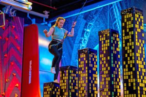 Abheben wie im All: Besucher erproben die Schwerelosigkeit im Weltraum-Entertainment-Center. Foto: djd/TourismusMarketing Niedersachsen/Space Magic Aurich