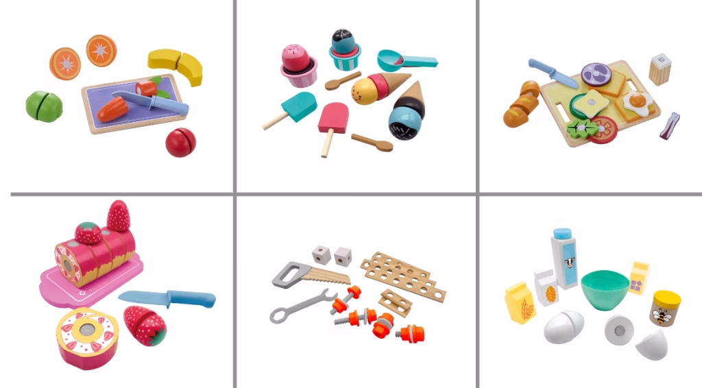 Varianten: Obst & Gemüse, Eiscremeset, Frühstück, Keksrolleset, Schraubenset, Backzutaten