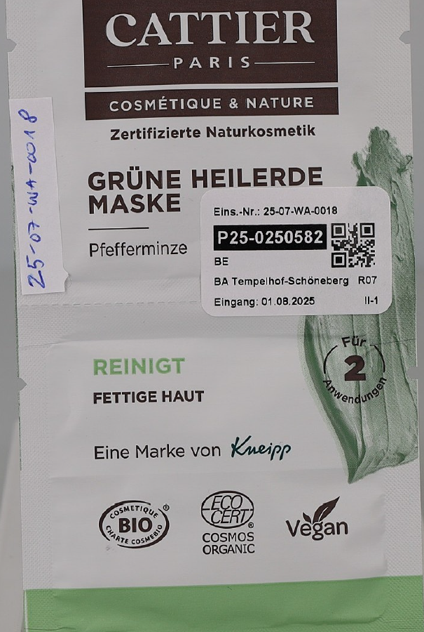 Das EU Schnellwarnsystem Safety Gate (vormals RAPEX) hat in der der Meldung SR/00113/26 vom 15.01.2026 eine Warnung zu Gesichtsmasken Grüne Heilerde Typ Pfefferminze der Marke CATTIER PARIS mit der Chargennummer 918446FOL01 veröffentlicht.
