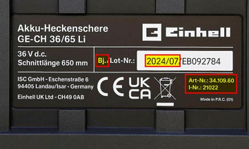Die Einhell Germany AG warnt vor einer möglichen Fehlfunktion bei einer Akku-Heckenschere des Typs GE-CH 36/65 Li-Solo. Nach Angaben des Unternehmens kann es zu einem Defekt am hinteren Ein-/Aus-Schalter kommen. In diesem Fall bleibt das Gerät dauerhaft eingeschaltet. Dadurch besteht ein erhebliches Verletzungsrisiko.
