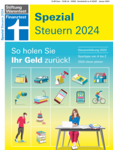 Auch Rentnerinnen und Rentner, Vermieter, Familien und Anleger finden im Finanztest-Spezial Steuern Spartipps und Ausfüllhilfen, um erfolgreich mit dem Finanzamt abzurechnen. Dazu gibt das Heft einen Überblick zu den für 2024 bereits verabschiedeten Steueränderungen und zu denen, die es noch geben soll.