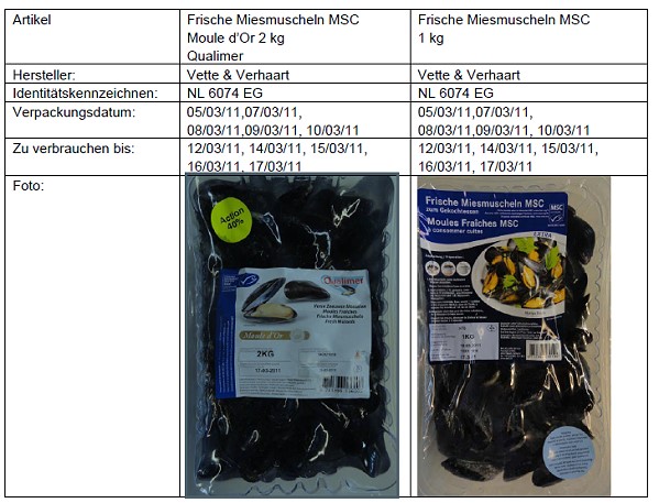 Lebensmittelsicherheit – In Frankreich sind 14 Personen nach dem Verzehr von holländischen Miesmuscheln an Durchfall und Erbrechen erkrankt. Diese Muscheln wurden auch in die Schweiz geliefert. Die noch nicht verkauften Produkte wurden bereits vom Markt genommen. Personen, welche diese Miesmuscheln gekauft haben und noch bei sich zu Hause aufbewahren werden aufgefordert, diese nicht zu verzehren.