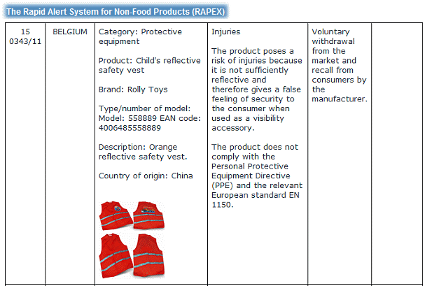 Allerdings sollte von einem Gebrauch als Warnweste für den öffentlichen Raum abgesehen werden!. Lesen Sie mehr in der dazugehörigen RAPEX-Meldung