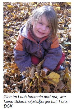 Schimmelpilze besiedeln abgestorbenes pflanzliches Material – in Blätterhaufen fühlen sie sich daher besonders wohl. Bei typischen im Herbst anfallenden Gartenarbeiten, wie beispielsweise dem Laub-Rechen, werden die Sporen der Pilze aufgewirbelt und eingeatmet. Sie können bei Menschen, die allergisch darauf reagieren, die charakteristischen Symptome hervorrufen: Niesanfälle, Fließschnupfen, tränende Augen, Husten und Atemnot. Vor allem hochgradig sensibilisierte Schimmelpilzallergiker sollten deshalb auf Laub-Rechen oder auch herbstliche Waldspaziergänge verzichten.