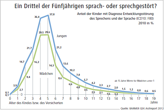 Für den stellvertretenden Vorstandsvorsitzenden der Barmer GEK, Dr. Rolf-Ulrich Schlenker, ist dies kein Grund für Alarmstimmung: „Wir sehen, dass professionelle Sprachförderung in Anspruch genommen wird.“ Tatsächlich werden Vorschüler mit diagnostizierter Sprachentwicklungsstörung zu einem guten Drittel auch logopädisch behandelt. Hinter den hohen Diagnoseraten dürften laut Dr. Thomas Grobe vom Institut für Sozialmedizin, Epidemiologie und Gesundheitssystemforschung aus Hannover (ISEG) vermutlich auch Abgrenzungsprobleme stecken: „Hier fehlen in der ärztlichen Praxis offenbar zum Teil noch geeignete, praktikable und einheitlich angewendete Kriterien der Diagnoseerstellung.“