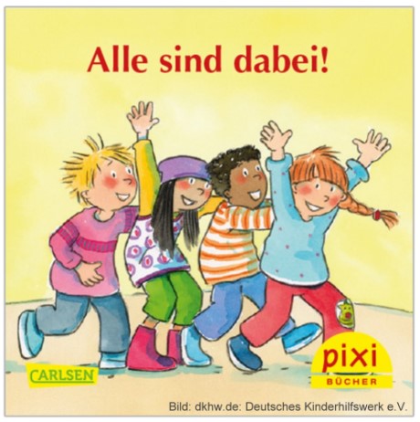 Das Deutsche Kinderhilfswerk hat heute in einer Berliner Kindertagesstätte gemeinsam mit dem Bundesfamilienministerium das neue Pixi-Buch „Alle sind dabei!“ vorgestellt. Das Buch macht bereits Kinder im Kita-Alter und ihre Eltern auf die in der UN-Kinderrechtskonvention festgeschriebenen Kinderrechte aufmerksam. Das neue Pixi-Buch befasst sich mit dem Thema Kinderarmut. Es ist nach den Pixi-Büchern zu den Themen Mitbestimmung von Kindern sowie Schutz von Kindern vor Gewalt das dritte dieser Reihe und wird vom Bundesministerium für Familie, Senioren, Frauen und Jugend gefördert.
