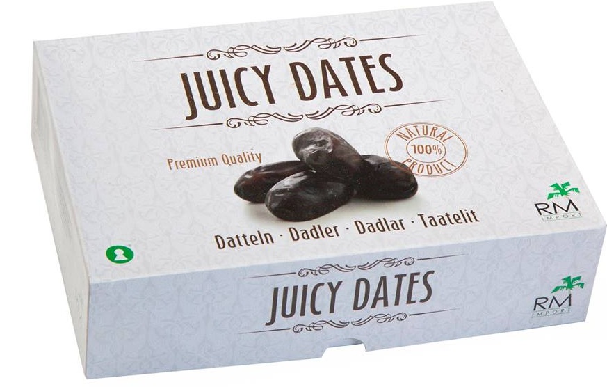 Gleich verpackte Datteln sind auch in Deutschland bundesweit in Supermärkten erhältlich.