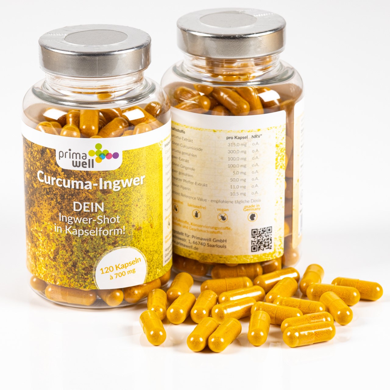 Artikel: Primawell Curcuma-Ingwer DEIN Ingwer-Shot in Kapselform!