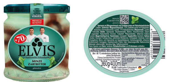 Die ELVIS EIS, Elvis Bogicevic e.K. informiert über den Rückruf von 4 Chargen des Eisartikels ELVIS Minze Zartbitter im 400ml Glas. Wie das Unternehmen mitteilt, wurde aufgrund eines menschlichen Fehlers das Elvis Eis im Glas der Sorte Minze Zartbitter für 2 Produktionstage nicht korrekt etikettiert.