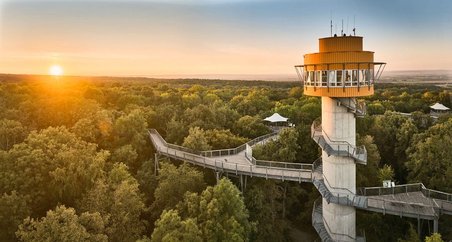 Der Baumkronenpfad im Nationalpark Hainich bietet Ausblicke über die zum UNESCO-Weltnaturerbe gehörenden Urwälder. Foto: djd/Welterberegion Wartburg Hainich/Tino Sieland