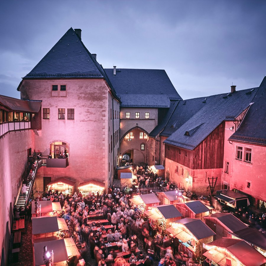 Die Schlossweihnacht im Hof von Schloss Rochlitz findet am 13. und 14. Dezember 2025 statt. Foto: djd/Tourismusverband Chemnitz Zwickau Region/Daniel Köhler