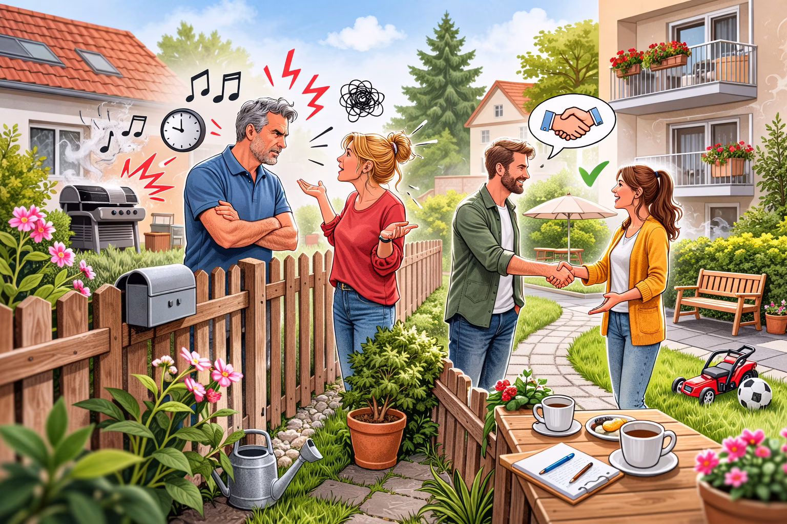 Ein gutes Miteinander in der Nachbarschaft sorgt für Lebensqualität. Doch Lärm, Streit um Parkplätze, überhängende Äste oder unterschiedliche Vorstellungen von Ordnung können schnell zu Konflikten führen. Nach Angaben des Deutscher Mieterbund zählen Ruhestörungen und Grenzstreitigkeiten zu den häufi...