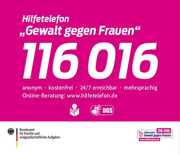 Mitmachaktion „Das Schweigen brechen“ ruft zu Engagement gegen Gewalt an Frauen auf! Die Zahlen von Gewalttaten gegenüber Frauen steigen stetig an: Dies belegt, wie tief verwurzelt geschlechtsspezifische Gewalt in der Gesellschaft ist. Das Hilfetelefon „Gewalt gegen Frauen“ macht mit der jährlichen ...