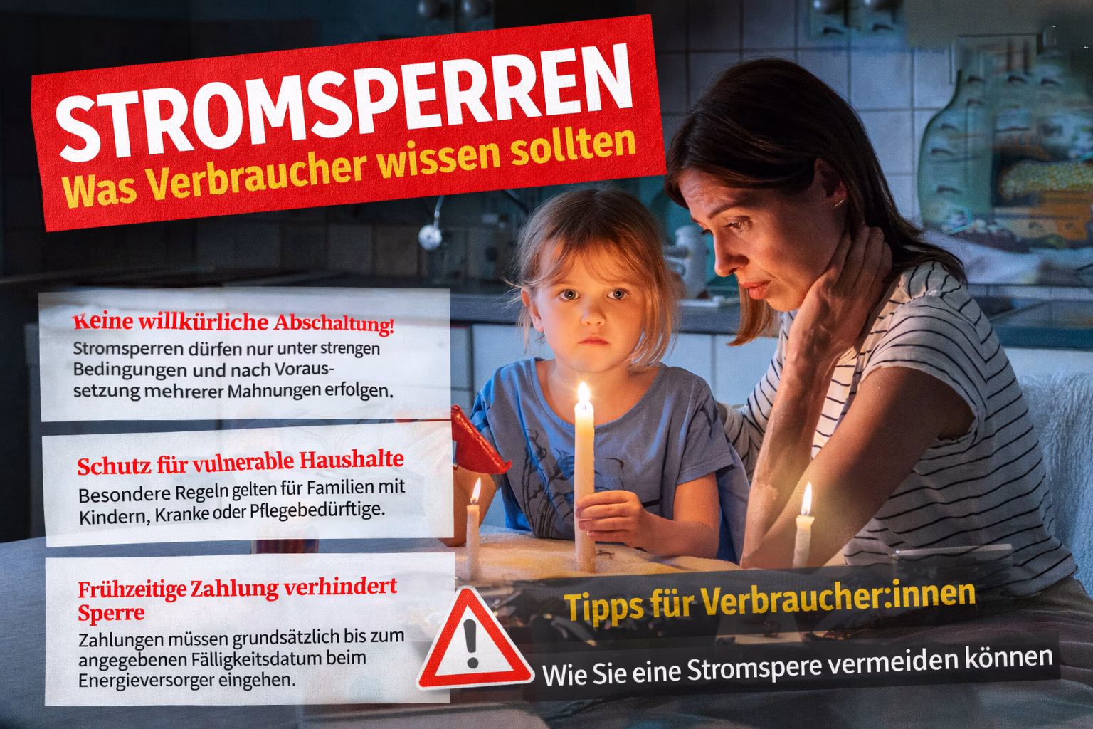 In Deutschland dürfen Stromanbieter Haushalten nicht einfach den Strom abstellen. Stromsperren sind nur unter bestimmten Bedingungen erlaubt und gelten als letztes Mittel bei Zahlungsrückständen. In besonderen Fällen – etwa bei Familien mit kleinen Kindern, Kranken oder Pflegebedürftigen – kann eine...