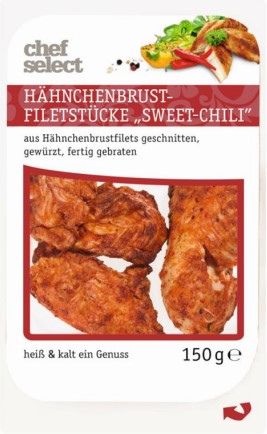 Der Hersteller SK Meat-Vertriebs GmbH informiert über die Angabe eines falschen Verbrauchsdatums (30.05.2018) auf dem Produkt „chef select Hähnchenbrust-Filetstücke Sweet-Chili, 150g“ mit der Charge CH 9101006 und dem Identitätskennzeichen DE NI 1004...