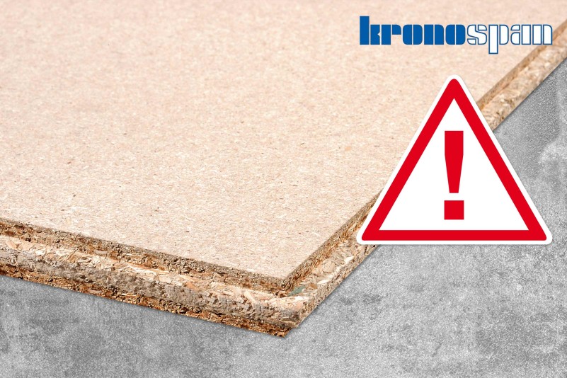 Die Firma Kronospan CR spol. s r.o. informiert darüber, dass es bei P3 Spanplatten (Verlegeplatten) mit Nut und Feder unter bestimmten Umständen zu erhöhter Formaldehydkonzentration in der Raumluft kommen kann. Seit 2006 gilt die krebserzeugende Wirkung von Formaldehyd bei Aufnahme über die Atemlu...