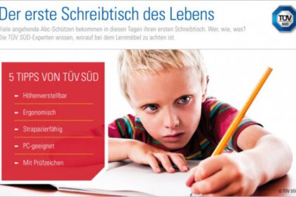 Nach den Sommerferien beginnt für viele Kinder mit der Einschulung eine neue Lebensphase. Zur richtigen Ausstattung der Erstklässler gehört ein wichtiges Möbelstück: der erste Schreibtisch ihres Lebens. Worauf bei der Auswahl und beim Einsatz zu achten ist, dazu gibt es Tipps von den Möbel-Fachleute...