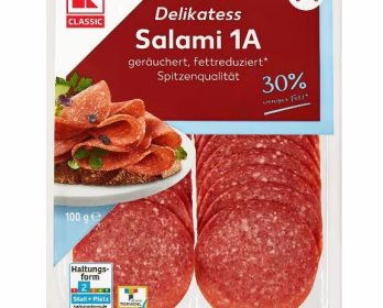 Die Carnis Vertriebs GmbH informiert über einen Produktrückruf der K Classic Delikatess Salami 1A fettreduziert in der 100-Gramm-Packung. Betroffen sind Produkte mit den Mindesthaltbarkeitsdaten 17.04.2026, 24.04.2026 und 01.05.2026. Grund für den Rückruf ist ein bei einer Routinekontrolle festgeste...